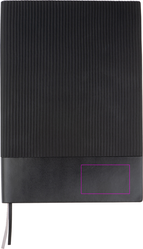A5-Notizbuch mit 200 karierten Seiten, flexiblem Soft-PU-Einband und Lesezeichen. Ihr Logo drucken wir auf die glatte Vorderseite.