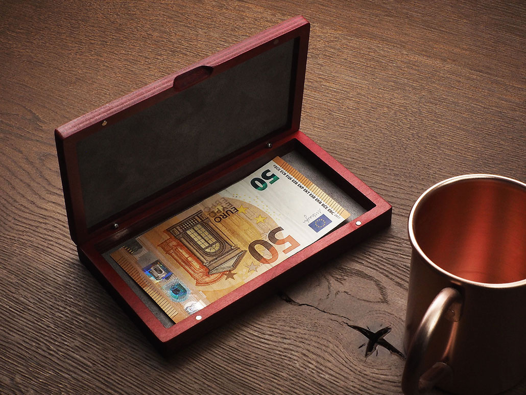 Logotrade werbemittel das Foto: Geldscheinbox aus Holz 1816121