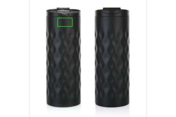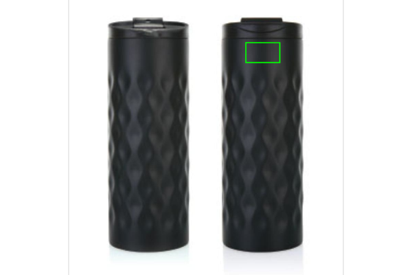 Doppelwandiger Becher aus Edelstahl mit trendigem, geometrischem Cut-Design. Inhalt: 350ml. Nur Handwäsche.