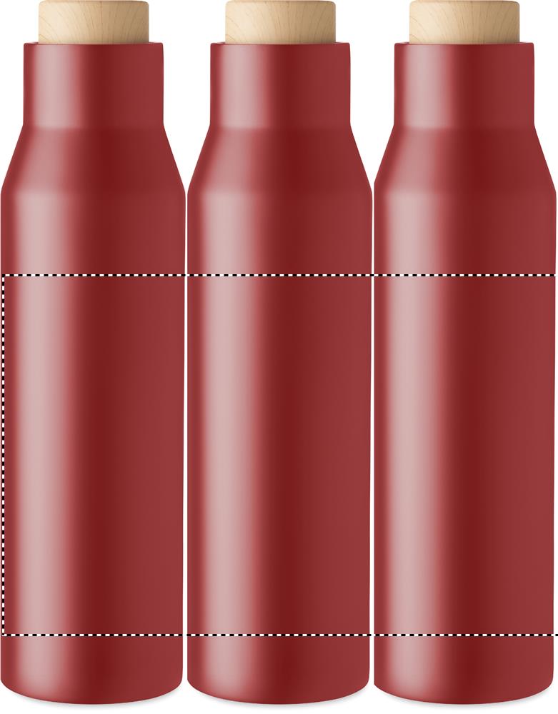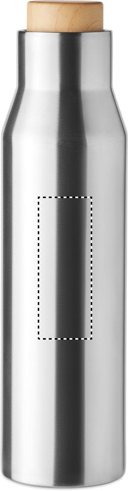 Doppelwandige Isolierflasche aus Edelstahl. Verschluss aus Bambus- Imitat. Füllmenge: 500 ml. Auslaufsicher.