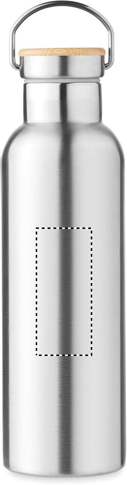Doppelwandige Isolierflasche aus Edelstahl mit Bambusdeckel und Henkel. Füllmenge: 750 ml. Auslaufsicher. Bambus ist ein natürliches Produkt, es kann daher zu leichten Abweichungen in Farbe, Dekor und Maßen kommen.