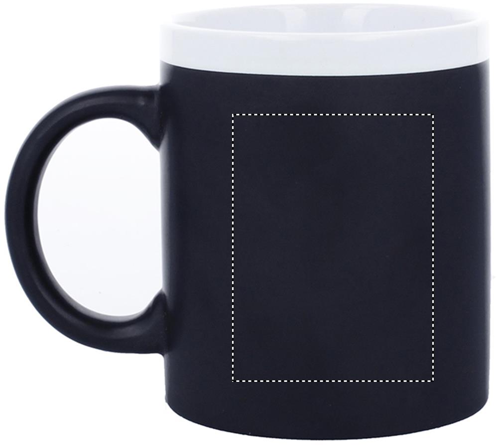 Kaffeebecher aus Keramik mit Tafelbeschichtung zum Beschriften. Füllmenge: 300 ml. Verpackt in einem weißen Karton.