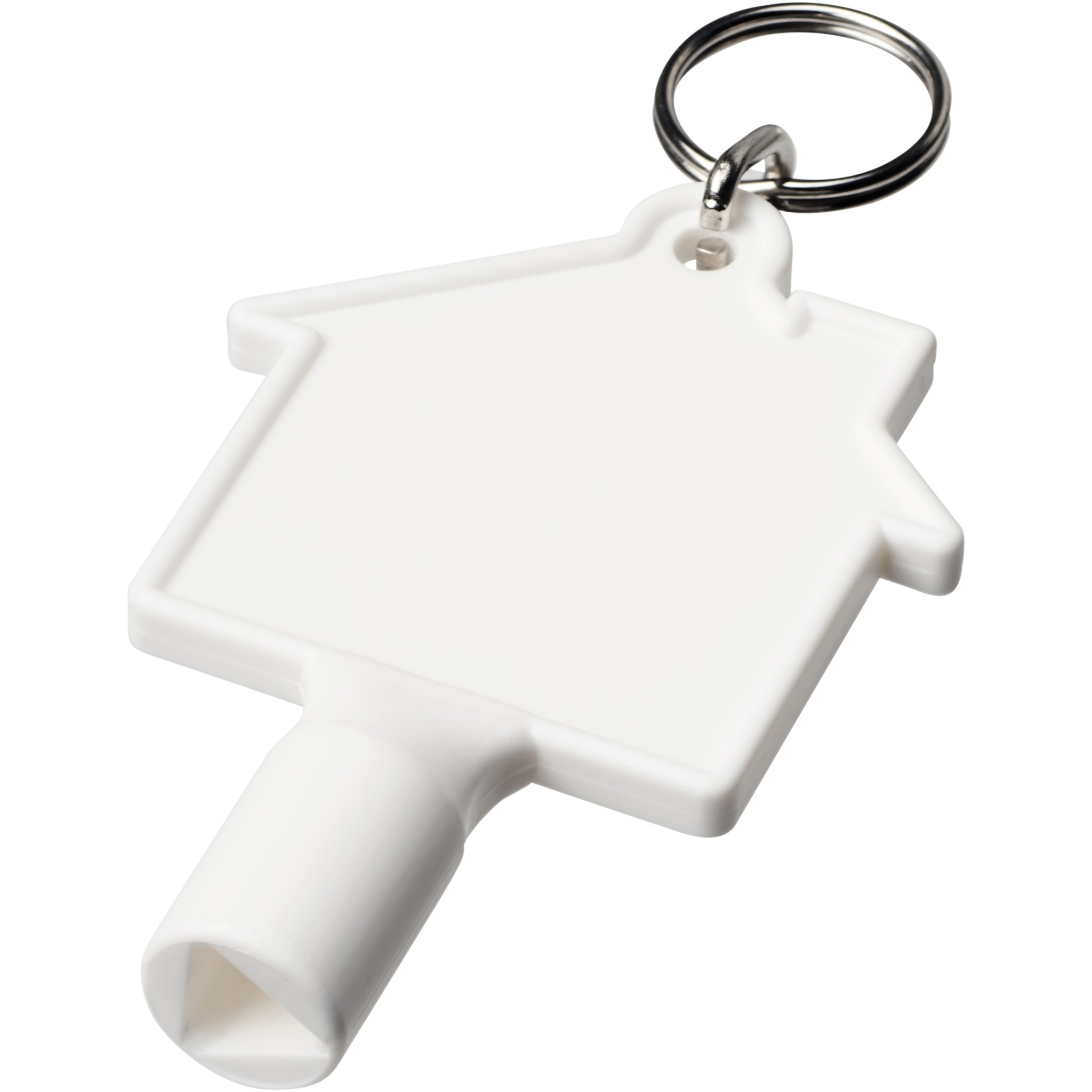 Maximilian Universalschlüssel in Hausform als Schlüsselanhänger aus recyceltem Kunststoff, Weiß