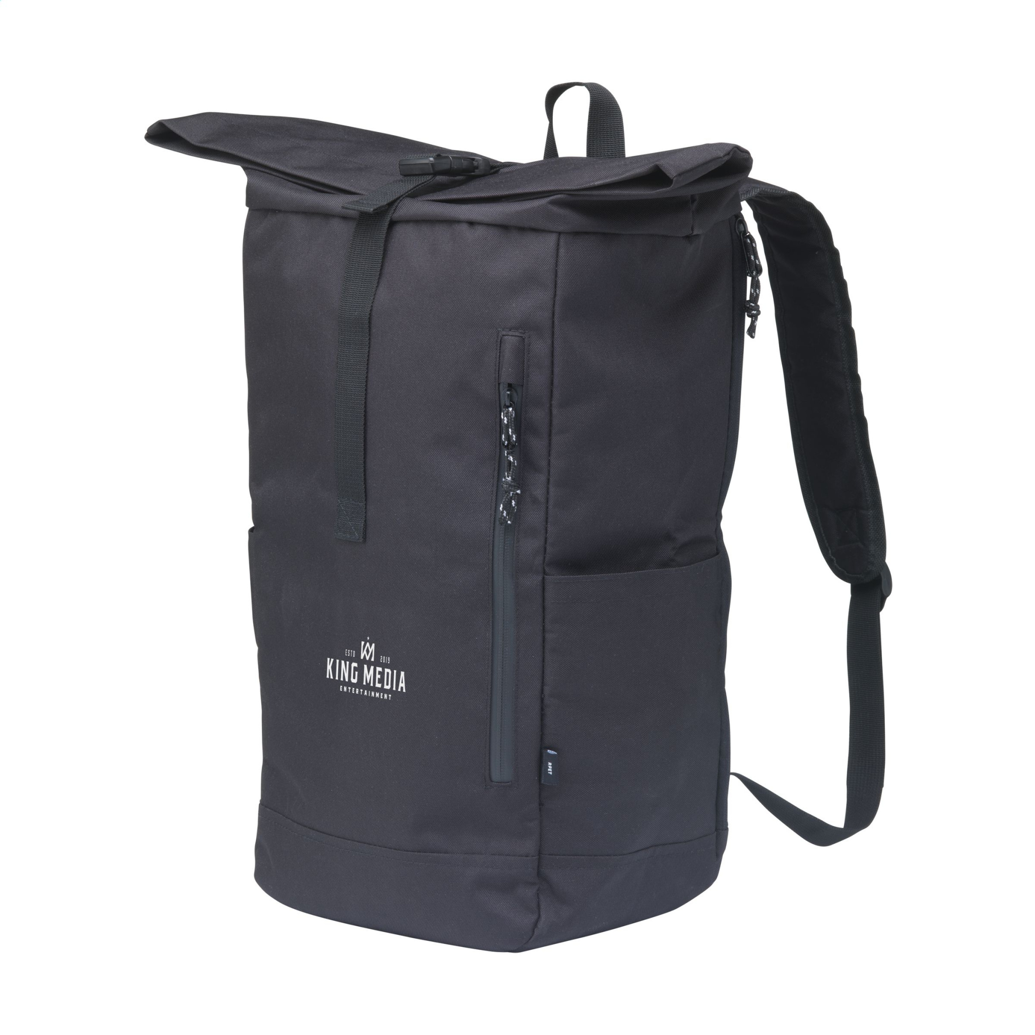 WoW! Praktischer, robuster und wasserabweisender urbaner „Rolltop“-Kühlrucksack aus RPET-Polyester. Dieser Rucksack hat ein großes Innenfach mit einem speziellen Kühlfach. Das Kühlfach ist leicht über die Oberseite der Tasche oder über einen praktischen und wasserdichten Reißverschluss auf der Rückseite zugänglich. Die ideale Tasche für Outdoor-Aktivitäten, Picknicks und Essenslieferungen. Inklusive einer Reißverschlusstasche auf der Vorderseite, zwei Seitentaschen, gepolsterter Schaumstoffrückseite, verstellbaren Schultergurten, einem Tragegurt und einem Rollverschluss mit praktischem Klicksystem oben. Fassungsvermögen ca. 30 Liter.