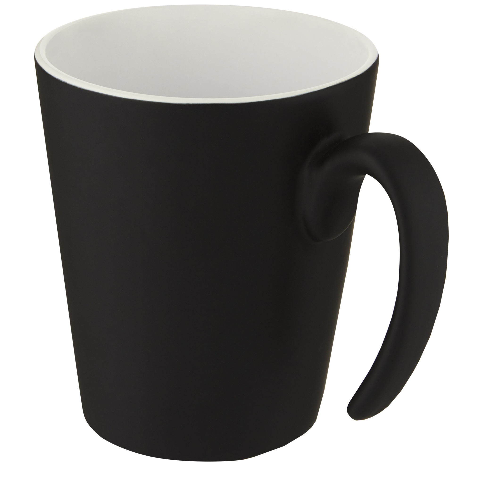 Keramiktasse in modernem Design mit matter Oberfläche und glänzender Innenseite, mit poppigem Farbeffekt. Das Fassungsvermögen beträgt 360 ml. Spülmaschinenfest einschließlich Aufdruck für die allermeisten Werbeanbringungsmethoden. Verpackt in einer Geschenkbox aus Recyclingkarton.