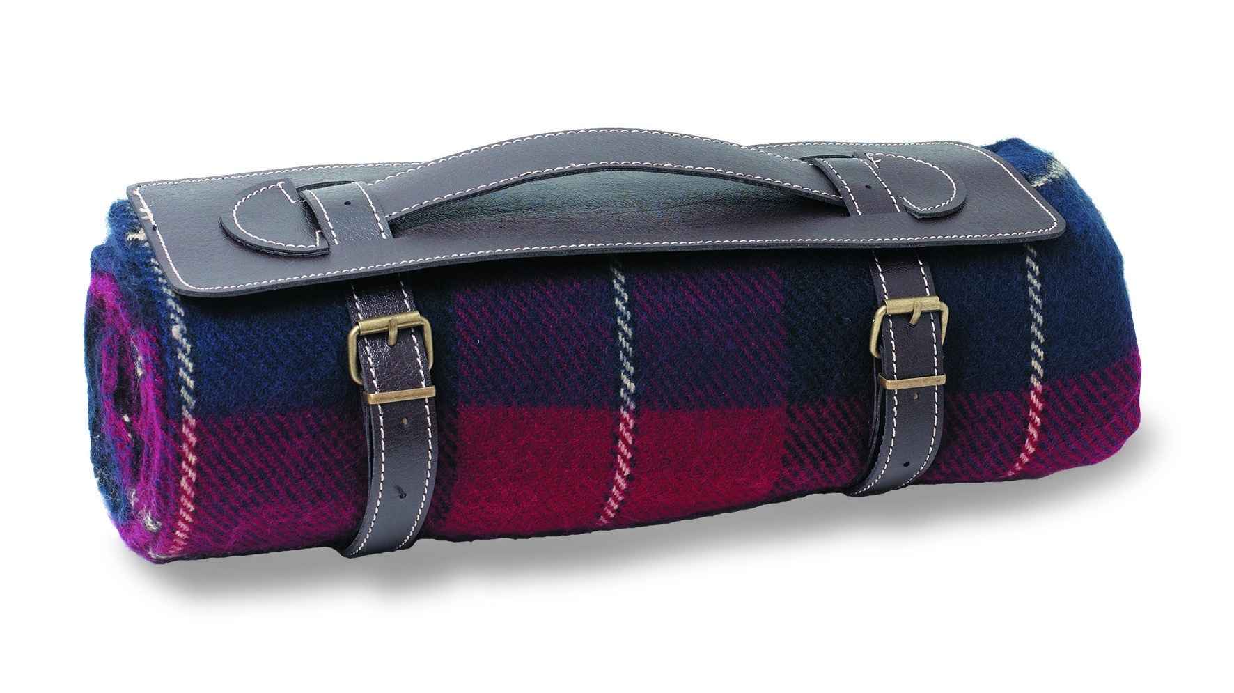 Gerollte Decke mit PVC Tragegriff. Karo-Muster. 100% Acryl.