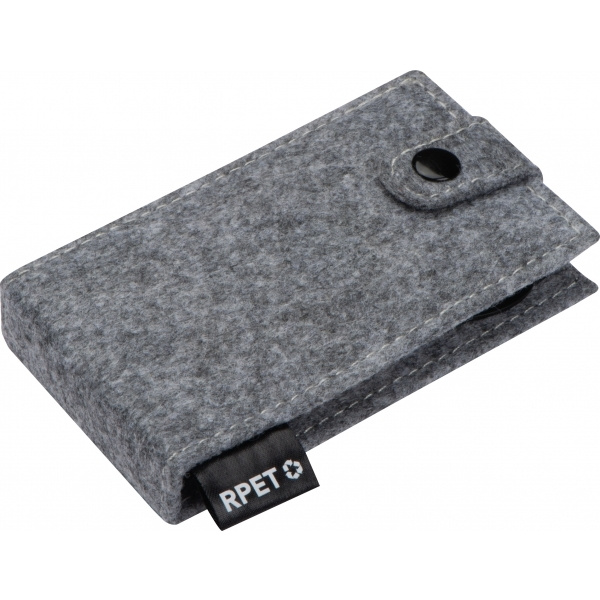 Attraktives Maniküre-Set aus Filz (recyceltes PET). Es beinhaltet eine Nagelschere, eine Nagelfeile, einen Nagelknipser, eine Pinzette und zwei Nagelhautschieber. Ihre Werbung platzieren wir auf der Vorderseite des Etuis.
