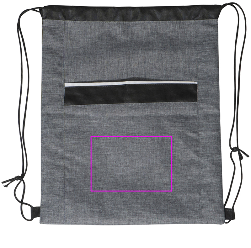 Non Woven Sporttasche mit Frontfach, auf das wir Ihr Logo drucken. Hier finden Sie ausreichend Platz für Ihre Sportutensilien.