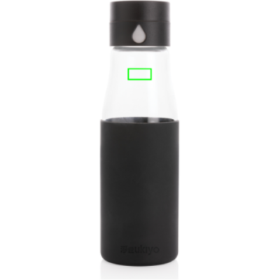 Logotrade Werbeartikel das Foto: Ukiyo Trink-Tracking-Flasche aus Glas mit Hülle