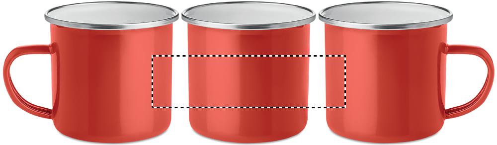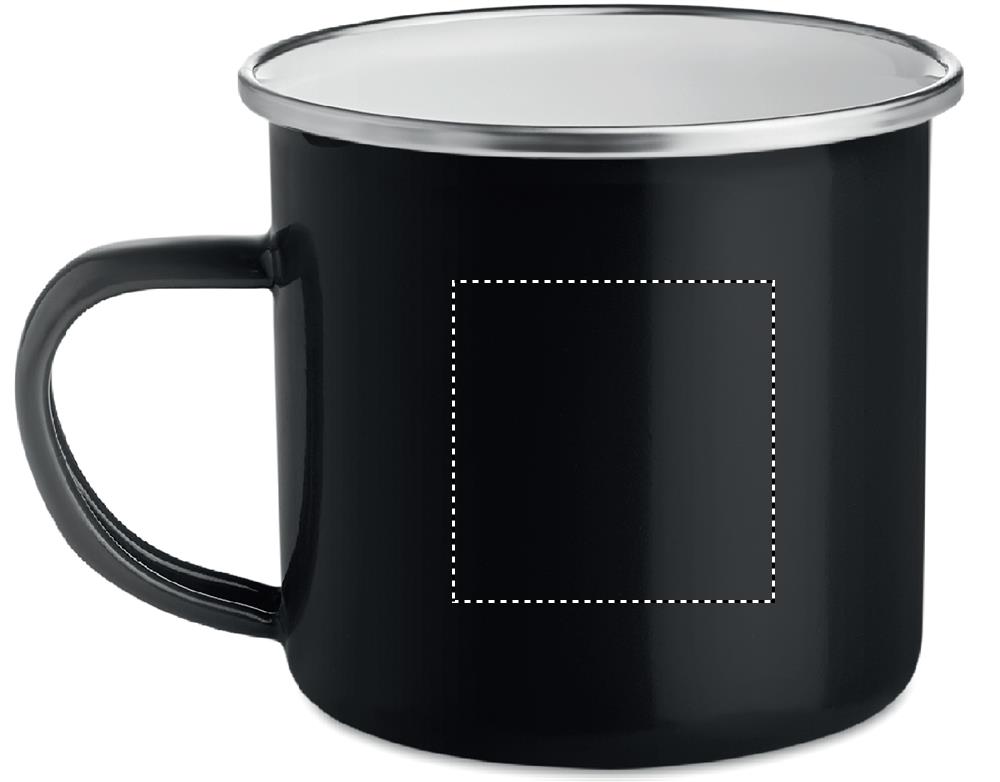 Emaillierter Metall-Becher im Vintage-Look. Füllmenge: 350 ml. Bitte beachten: Keine Drucktechnik ist spülmaschinengeeignet, auch Keramik-Transferdruck nicht.