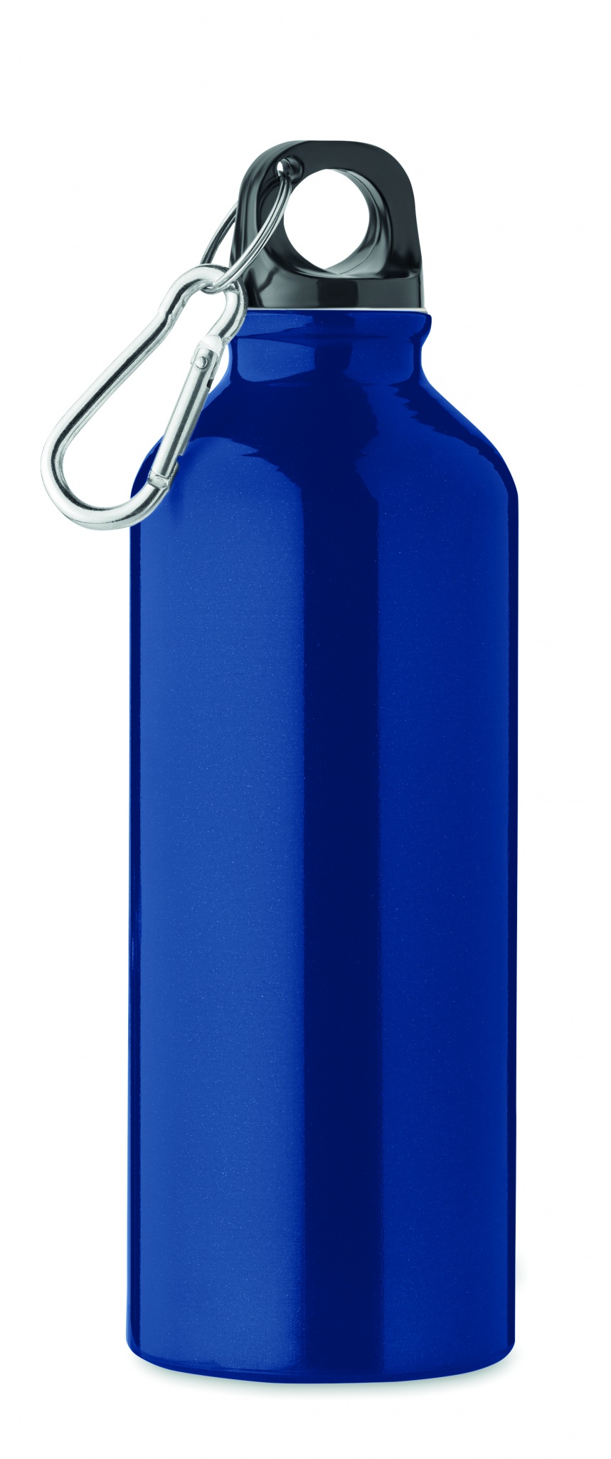 Single wall recycled aluminium bottle with carabiner. Capacity: 500 ml. Leak free. The carabiner is not for climbing (non professional use). Sublimation print available on white item only.