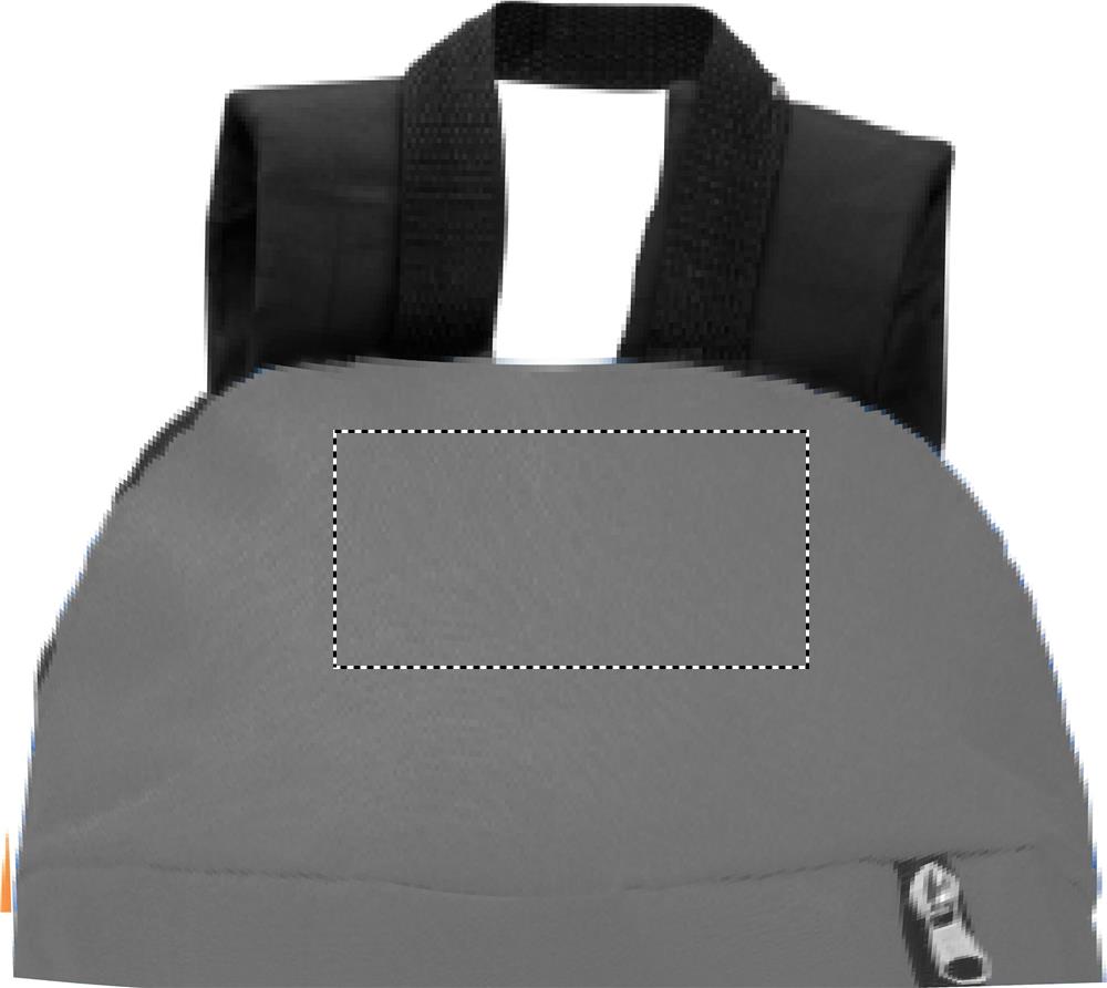 Backpack in 600D polyester with zippered outside pocket and for comfort a padded back section in 210D polyester.