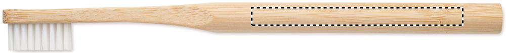 Toothbrush with bamboo handle and nylon brushes with stand. Presented in kraft paper box. Bamboo is a natural product, there may be slight variations in colour and size per item, which can affect the final decoration outcome.