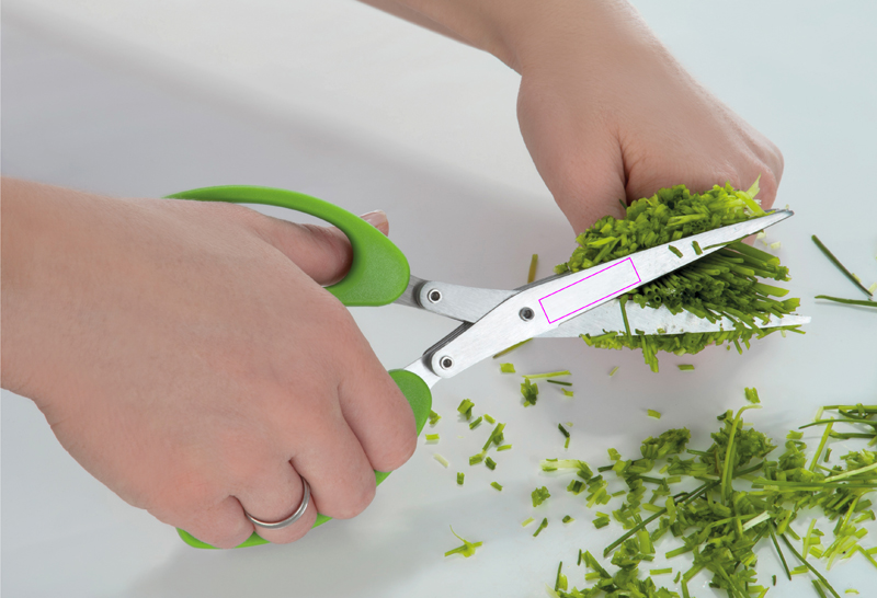 With this great stainless steel herb scissors you can cut herbs five times faster in the future. We apply your logo on the protective cover by means of pad printing.