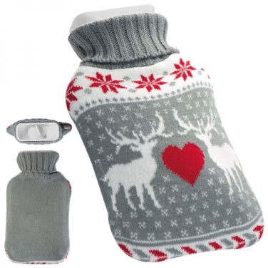 Hot water bottle with cuddly knitted cover and Christmas motif. Capacity 500ml. We print your logo on the back of the cover.