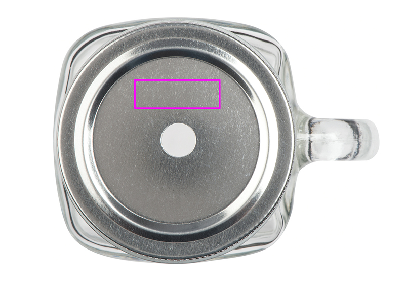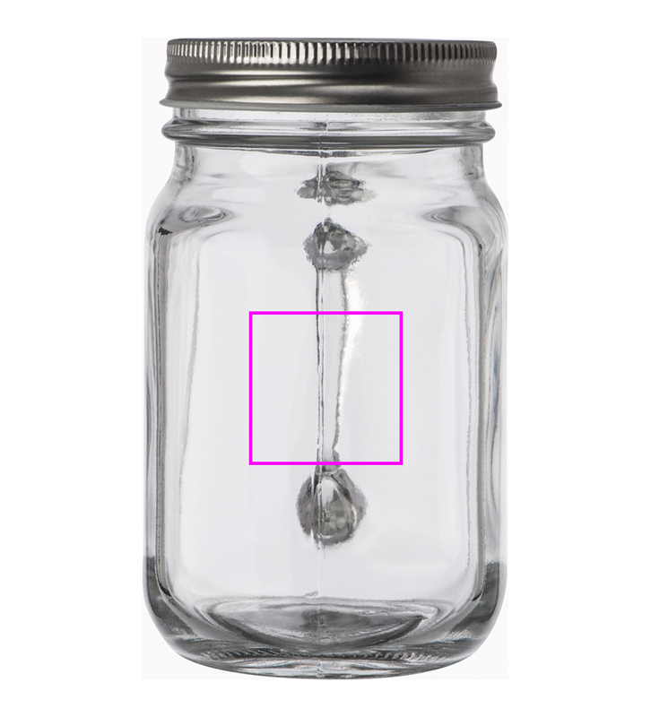 Glas jug (450 ml) with metal screw top, and straw hole (straw is not included). Your logo will be laser engraved on the screw top.