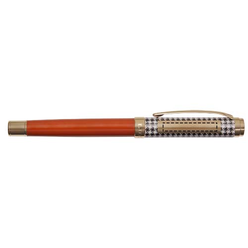 The Legato is an elegant combination of an A5 notebook and a rollerball pen. The pen has a recycled brass upper barrel with gold chromed finish, lower barrel with a black/brown spray coating finish, metal gold chromed accessories, and a LUXE logo on the mid ring. Ink colour: Black. Writing length: 400 metres. Nib size: 0.7 mm. The notebook has 80 sheets of 80 g/m² lined paper, and has a recycled plastic cover, an elastic closure, ribbon marker, and accordion pocket. Gold chromed metal accessory on the elastic closure. Delivered in a recycled cardboard gift box.