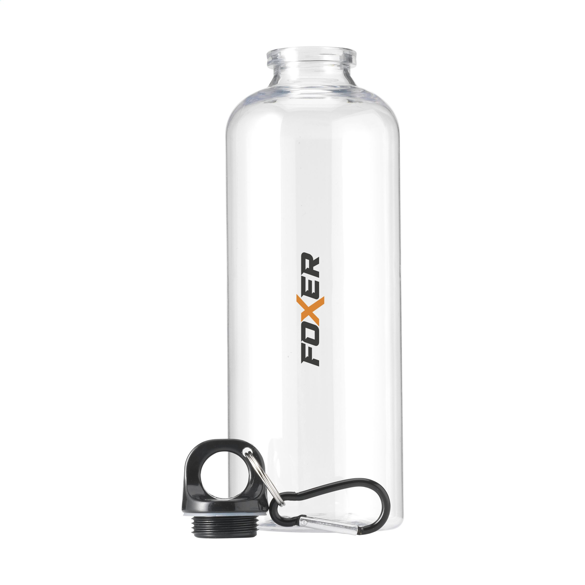 WoW! Reusable, recycled water bottle. The body is made from 100% RPET. With a plastic screw cap and a aluminium carabiner to easily attach the bottle to your bag or backpack. The carabiner is not to be used for climbing. You can take this ideal lightweight bottle with you everywhere. Only suitable for cold water. Leak proof. Not dishwasher-safe. GRS-certified. Total recycled material: 83%. Capacity 630 ml.