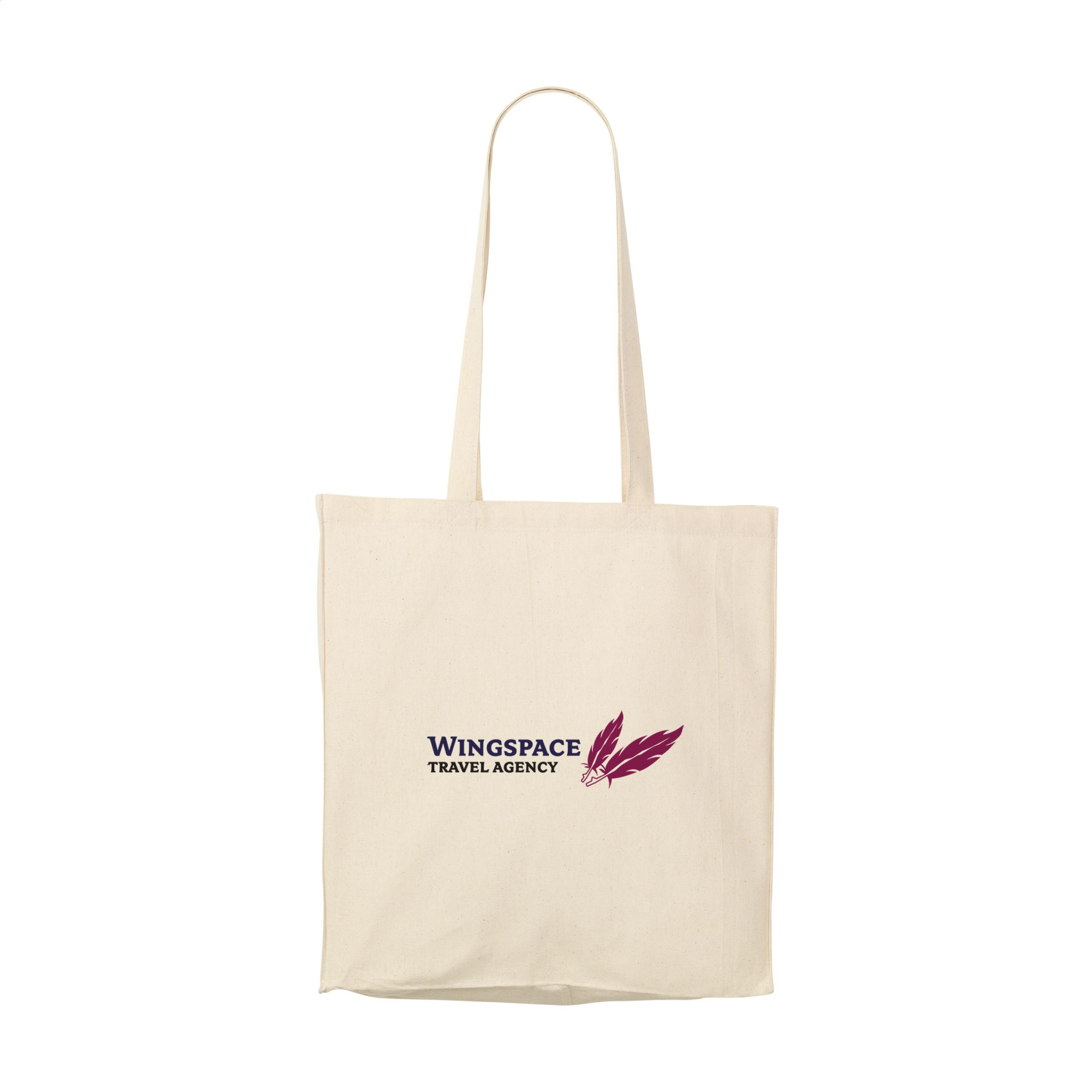 Sturdy shopper with long handles. Made from 100% woven cotton (165 g/m²). Capacity approx. 12 liters.