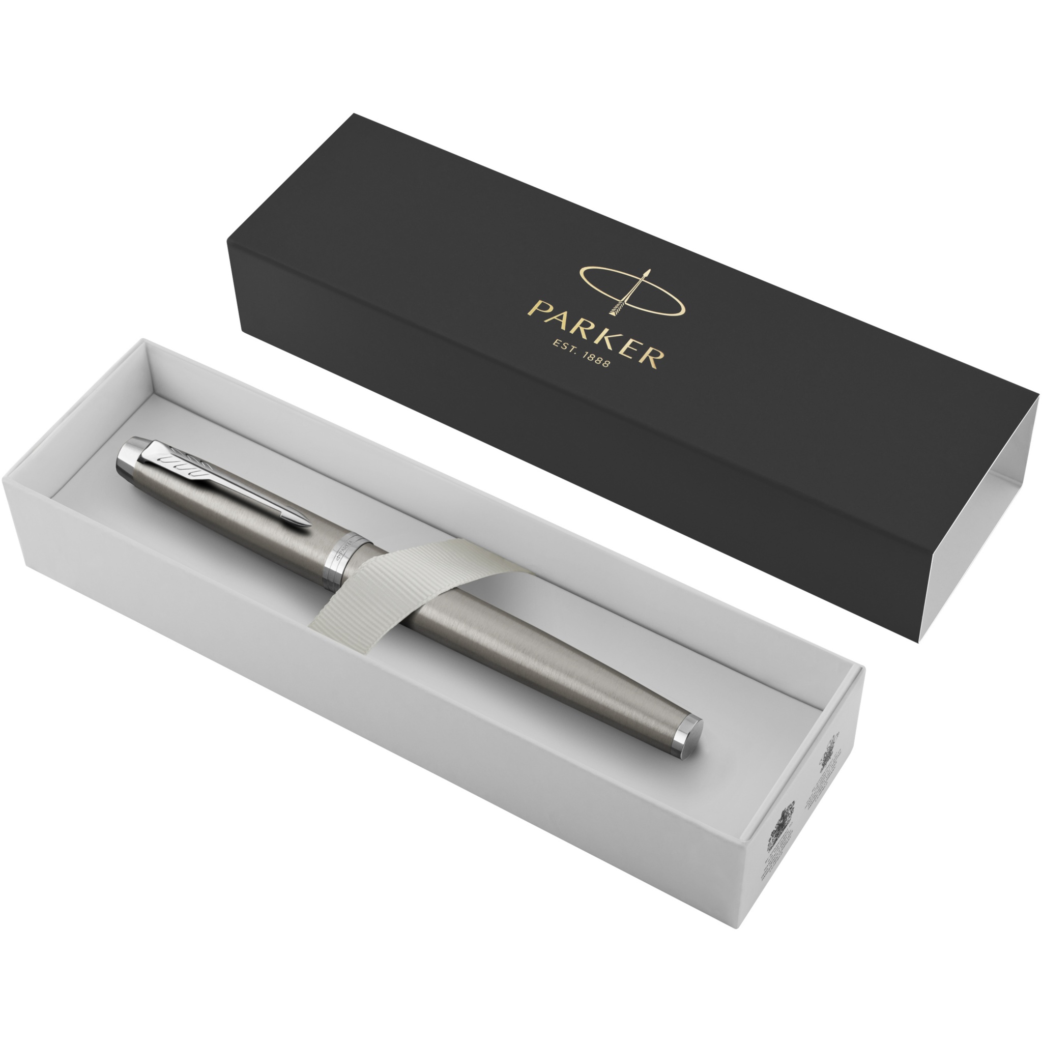 The Parker IM is an ideal partner with unlimited potential. The sleek tapered shape pairs seamlessly with innovative designs to make a striking statement. The finish trims compliment the body, making this Parker pen the perfect writing instrument for students and professionals. The nib is made from durable stainless steel and shaped to provide the optimal writing angle. For use with QUINK ink cartridges or convertible to ink bottle filling. Delivered with one cartridge and a Parker gift box. Exclusive design.