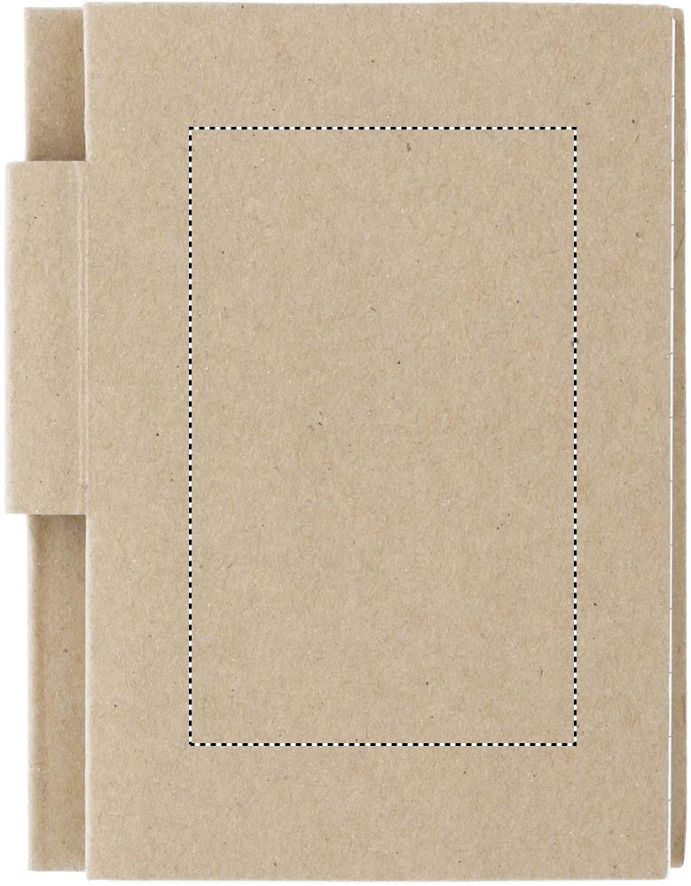 Recycled paper notebook with matching pen. Soft paper cover with pen holder. Casebound. 160 lined pages (80 sheets). Matching push button ball pen in recycled carton and biodegradable plastic. Blue ink.