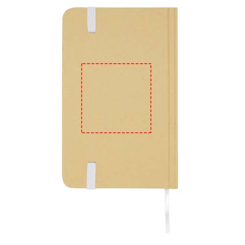 The Reed A6 recycled cardboard hard cover notebook with rounded corners is not only an office essential but also a great opportunity to promote your brand. The notebook has 96 blank sheets of 70 g/m2 paper and a soft-feel cover. Comes with an elastic closure and a ribbon marker.