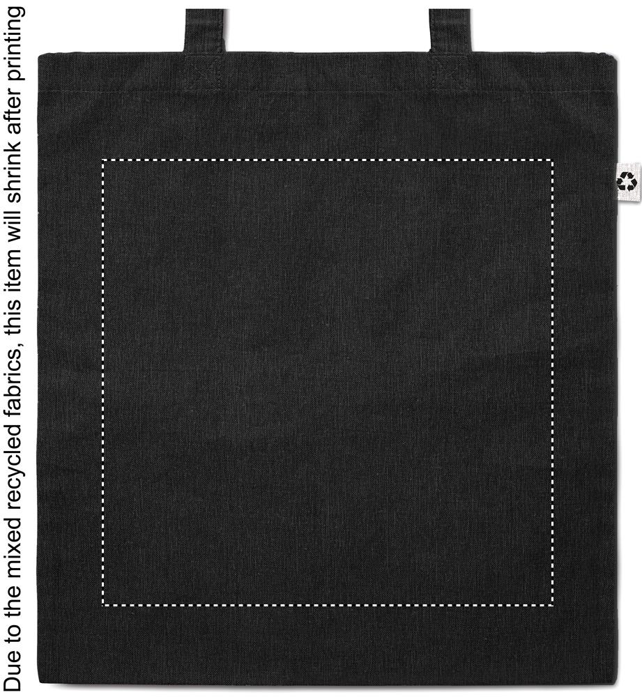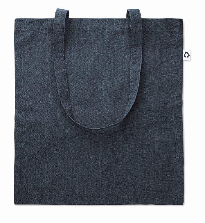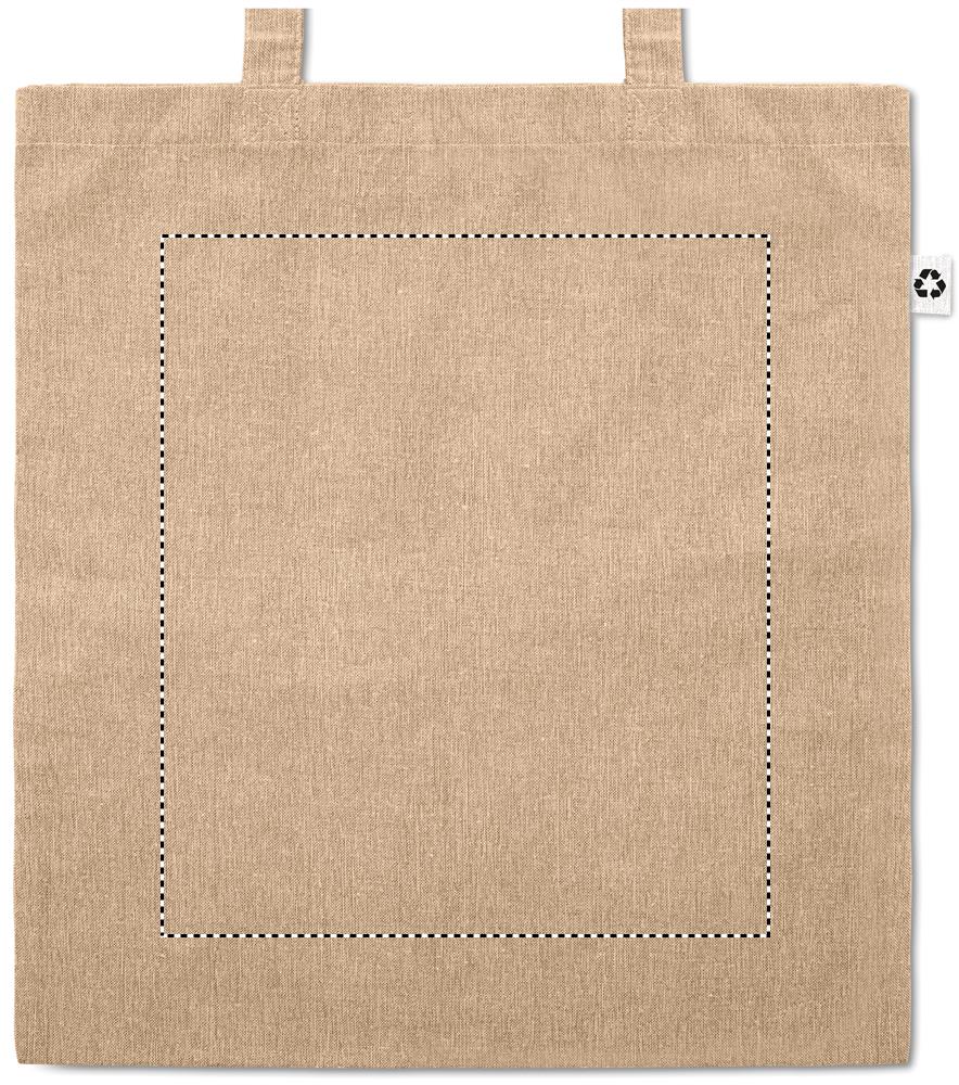 2 tone recycled cotton (20%) and recycled polyester (80%)shopping bag with long handles. Approx. 140 gr/m². This item can shrink after printing.