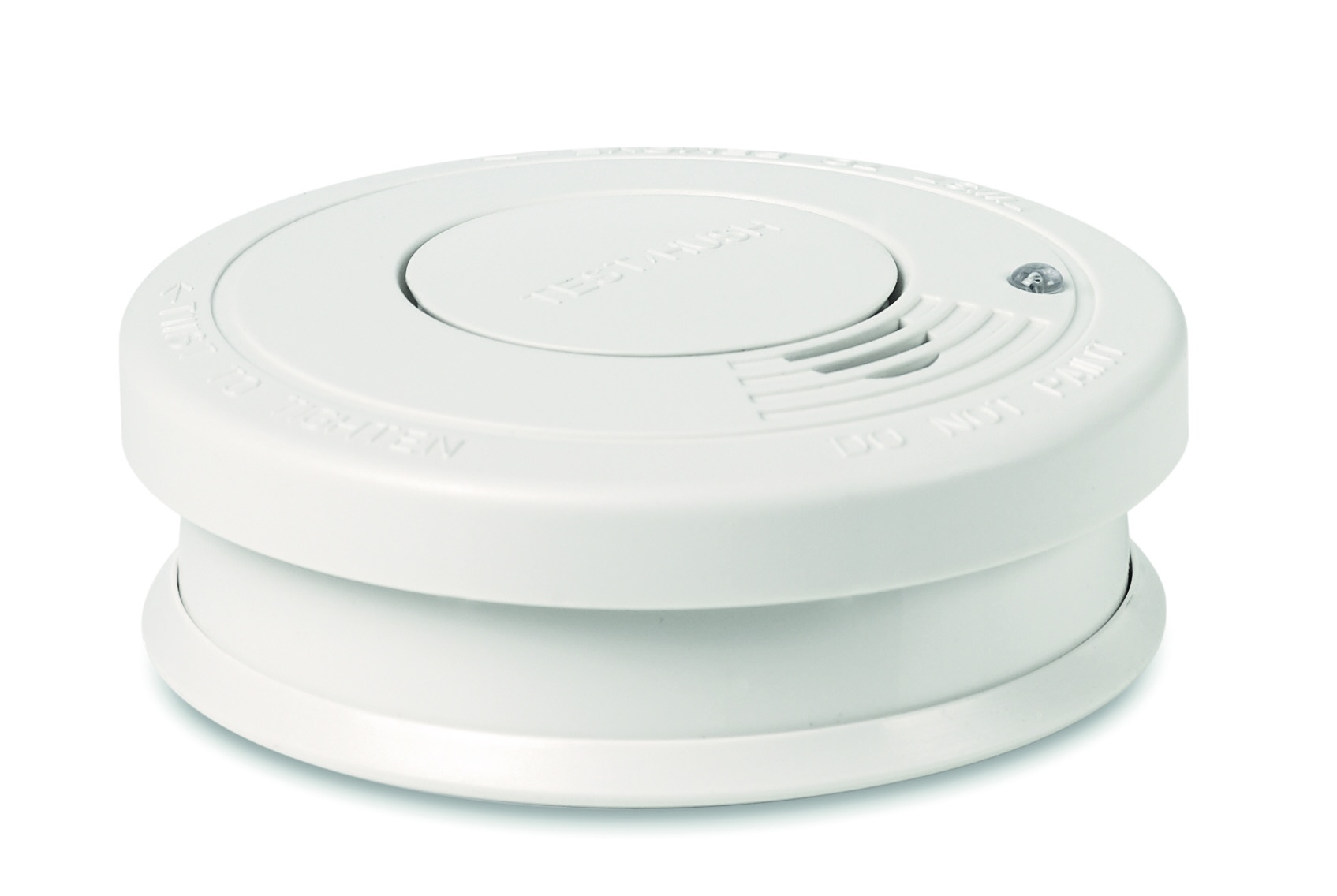 Smoke detector in plastic casing with red operating light. Includes 2 screws for easy fixing. One 9 Volt battery included.