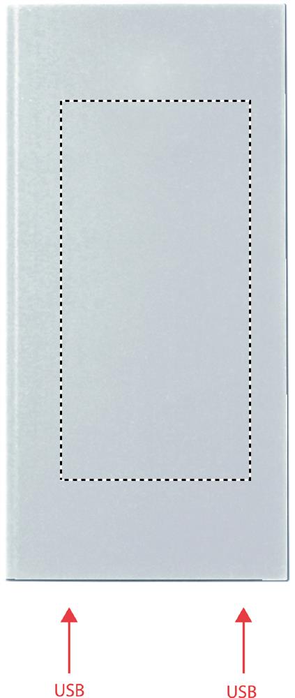 Power bank 8000 mAh in aluminium and solar panel. Capacity for smartphone use, output current DC5V/1A and DC5V/2A. Includes indicating light and USB cable with micro usb plug.