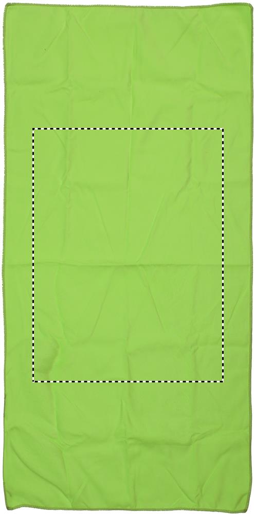 Sports towel presented in nylon pouch with adjustable closing. Towel: 70% polyester, 30% polyamide.