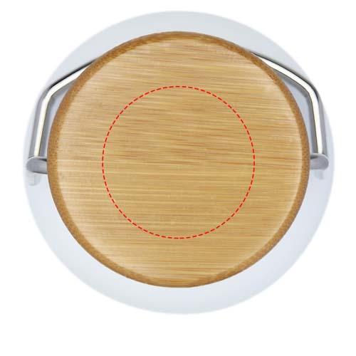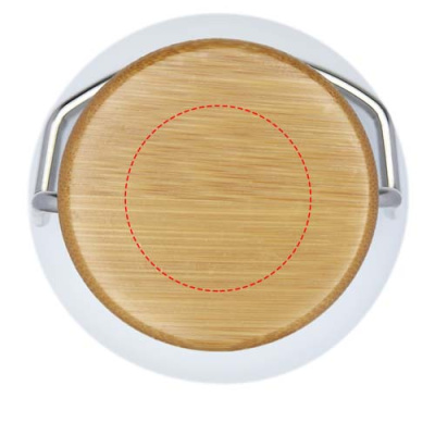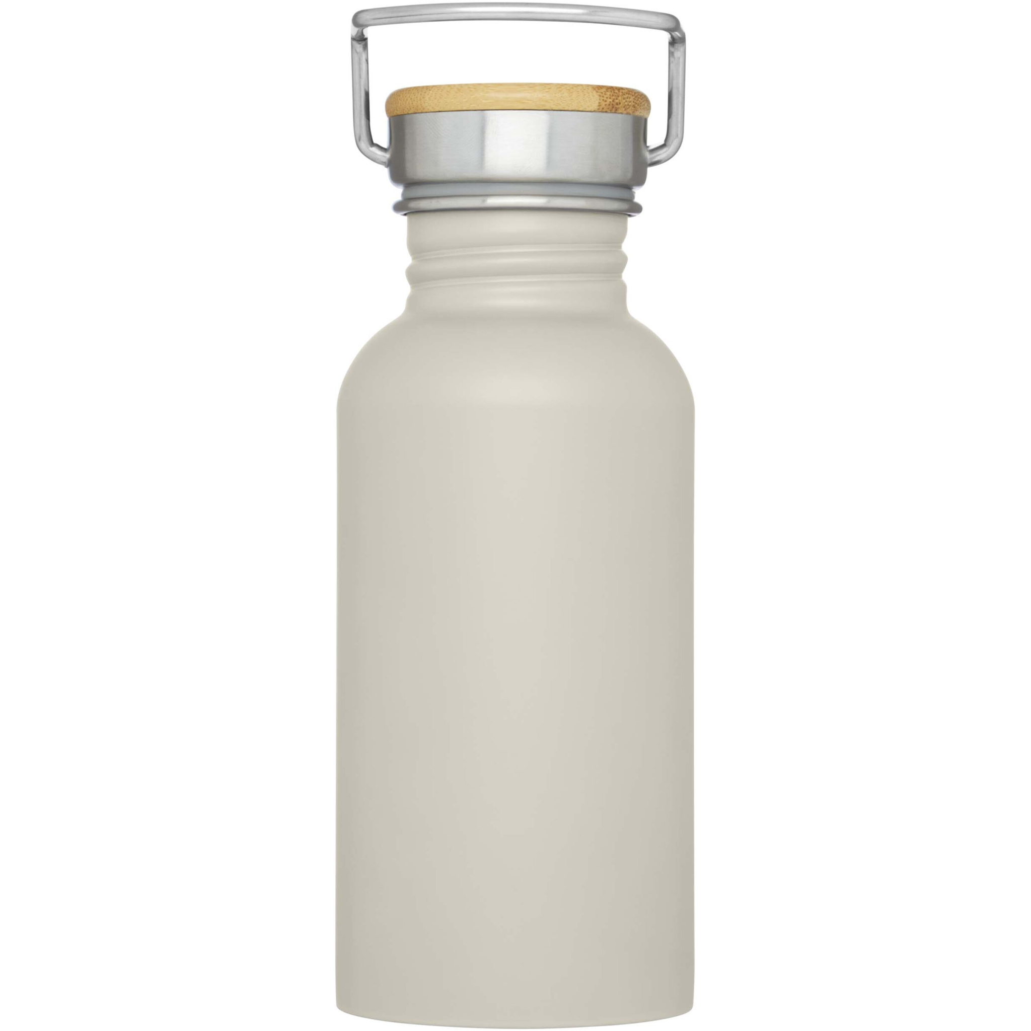 Single-walled stainless steel bottle with screw-on lid. The lid features a bamboo top, as well as a handle for easy carrying. Volume capacity is 550 ml. Presented in an Avenue gift box.