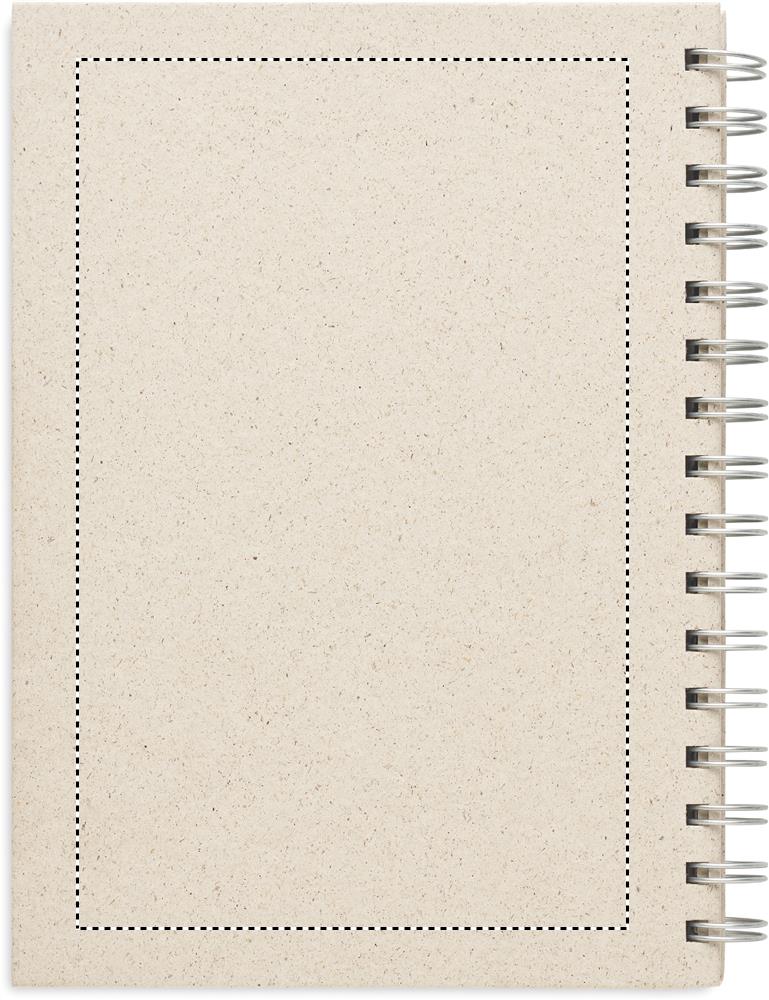 A5 murupaberist märkmik. Murupaberist kõva kate. Kahejuhtmeline. 160 joonega murupaberilehte (80 lehte). 95 gsm paber. 40% murukiude sisaldav murupaber.