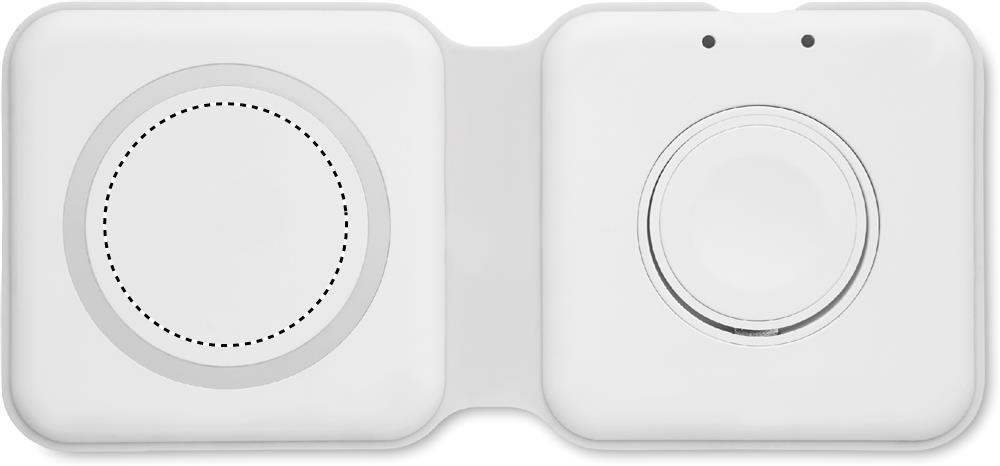 Valge 2-ühes kokkupandav ABS-laadija. See sisaldab juhtmevaba laadijat 15 W ja nutikella laadijat (ainult Apple®).