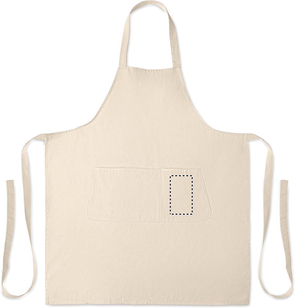 Reguleeritava suurusega põll ühe suure esitasku ja kahe sektsiooniga. Valmistatud 240 g/m² orgaanilisest puuvillast. Kaelarihmal on reguleeritav nööp. Toode on OEKO-TEX® STANDARD 100 sertifikaadiga.