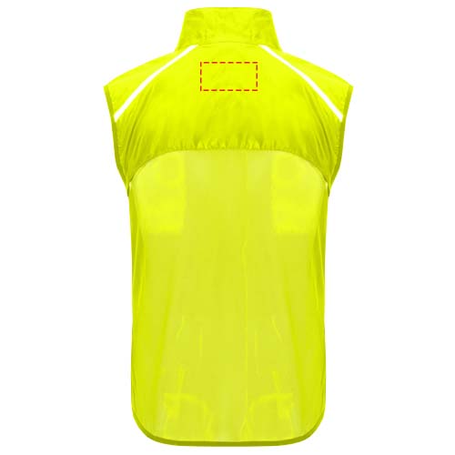 Tuulekindel ja hingav. Ees tõmblukk koos sobiva lõuakaitsega. Elastne side käeaugus ja allosas. Seljaosa alumine osa mikroperforeeritud kangast. Hästi nähtavad detailid peal, ees ja taga. Elastse rihmaga tasku vesti hoidmiseks ja randmel kandmiseks. Eemaldatav etikett.