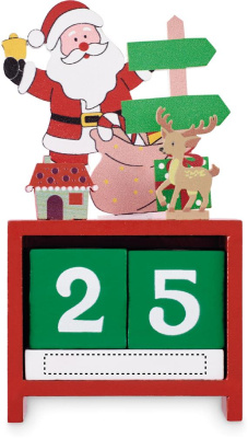 Puidust jõulude loenduriga lauakalender.