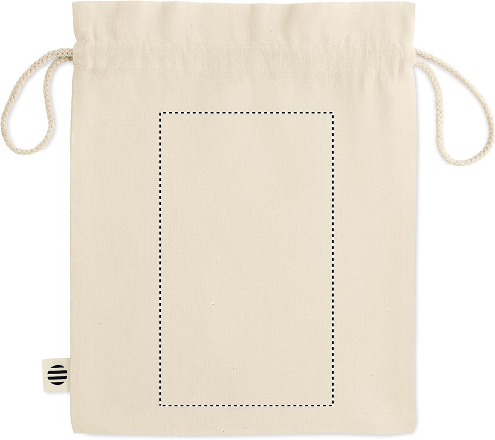 Orgaanilisest puuvillast keskmise suurusega kingituseks tõmmatud nöörikott. Suurus ca. 25 x 32 cm. 105 gr/m².