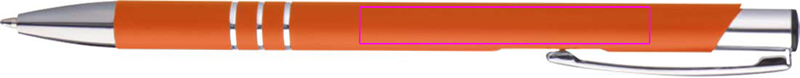 Õhuke metallist kuulpliiats kummiviimistlusega ja sinise kirjaga plastikust täidisega. Teie logo graveeritakse klipi alla.