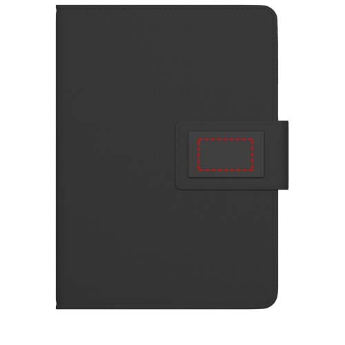 Valgustatud logoga sülearvuti, millel on 4000 mAh toitepank ja kolm-ühes integreeritud kaabel (C-tüüp, Android, iPhone). Sisend: 5V/1A. Väljund: 5V/2A. Avamisel süttib magnetrihm. See funktsioon töötab kuni 25 päeva ilma seadet laadimata! Eemaldatava A5-formaadis märkmikuga on kaasas 30 lehekülge taaskasutatud ja biolagunevat paberit. Tarnitakse magnetsulguriga kinkekarbiga, mis on valmistatud taaskasutatud paberist.