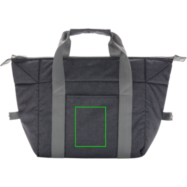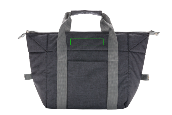 Keskmise suurusega 600D külmakott. Mahutab kuni 26 purki. Külgnööpe sulgedes saab hõlpsasti muuta kotiks. Ees varrukastaskuga.