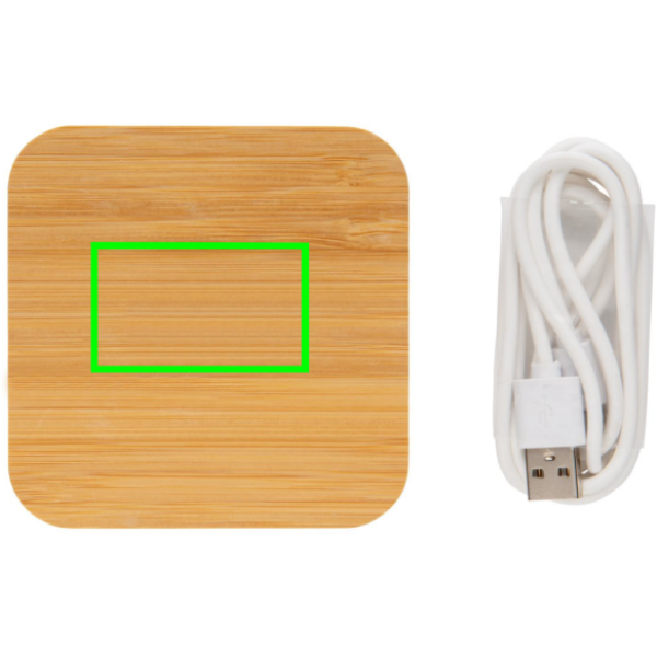 5W langaton laturi valmistettu 100% sertifioidusta bambusta kahdella sisäänrakennetulla USB-portilla. Sisältää 150cm 100% RCS kierrätetystä TPE-materiaalista valmistetun micro-USB -kaapelin. Sopii kaikille QI -yhteensopiville laitteille kuten iPhone 8 ja uudemmille, sekä Androidin uusimmille. Sisääntulo: 5V/2A; USB ulostulo 5V/2A. Langaton ulostulo: 5V/1A - 5W; tuote ja lisätarvikkeet 100% PVC-vapaita. Pakattu FSC®sekoituksesta valmistettuun pakkaukseen.