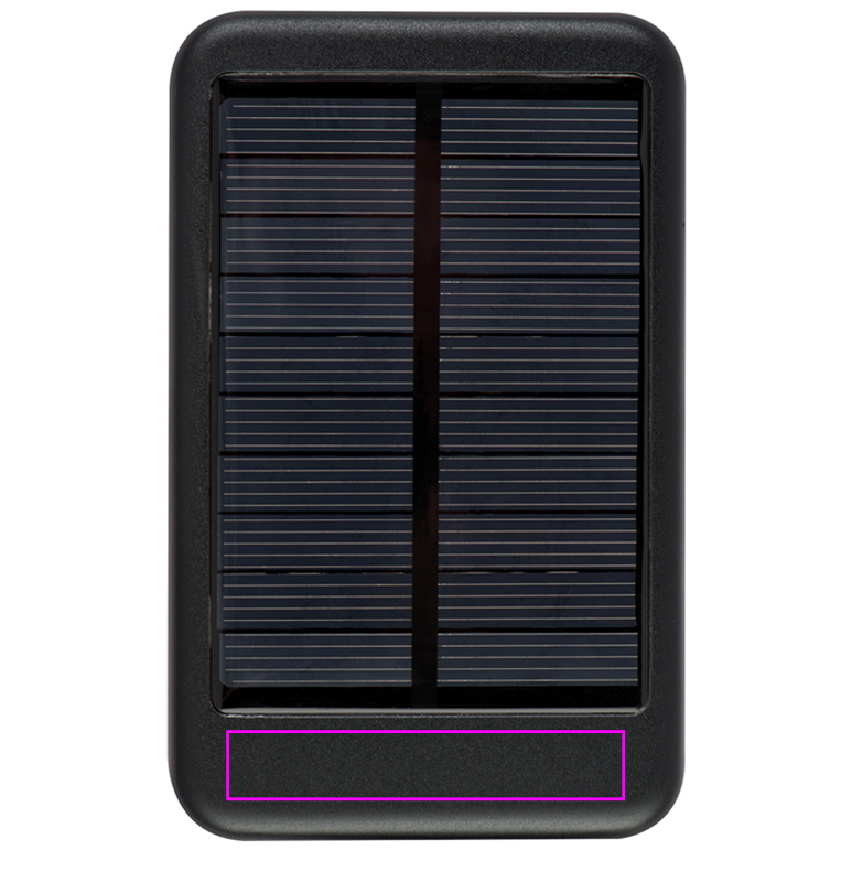 Aurinkovoimapankki (varustettu 20 aurinkopaneelilla) metallista, kapasiteetti 4000 mAh ja USB-latauskaapeli. Voit siis ladata älypuhelimesi tai tablettisi liikkeellä ollessasi ilman pistorasiaa. Tulostamme logosi aurinkokentän alle.