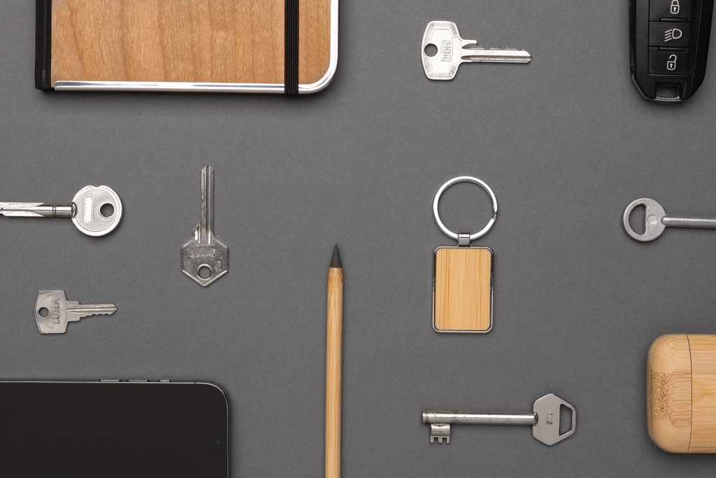 Logo trade liikelahjat mainoslahjat kuva: Bambu avaimenperä RCS kierrätettyä sinkkiseosta