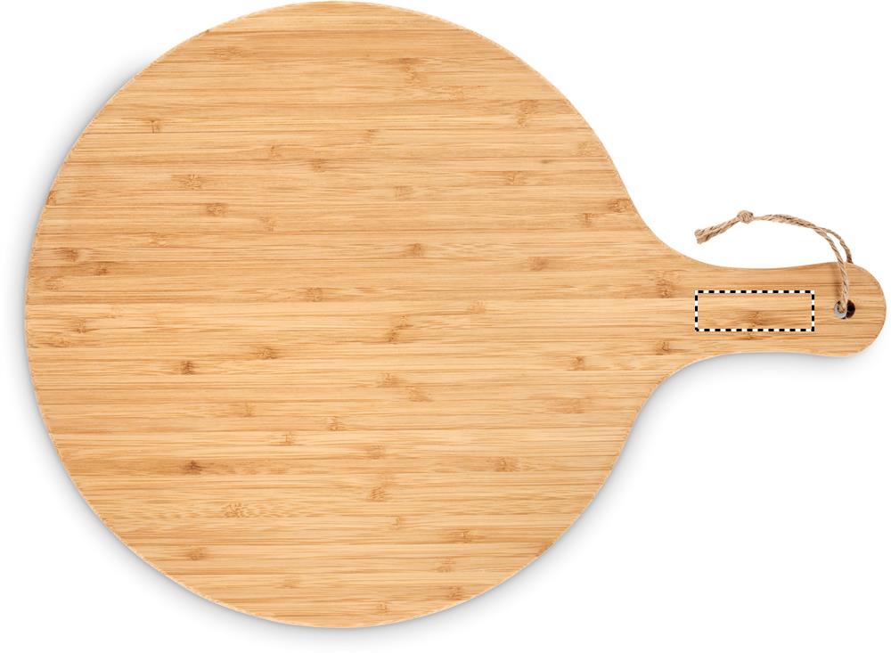 Bambusta valmistettu leikkuulauta, kätevällä tarjoilukahvalla ja juuttiripustimella, ø31cm. Luonnollisen materiaalin (bambu) vuoksi, tuotteiden värissä/ koossa saattaa olla erinäisyyksiä ja tämä voi vaikuttaa painatuksen lopputulokseen.