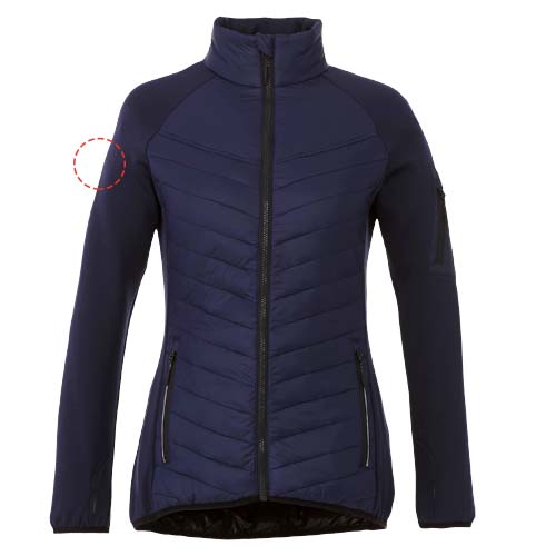 Banff naisten eristetty hybriditakki - täydellinen yhdistelmä tyyliä ja suorituskykyä. Myrskyläppä varmistaa, että tuuli ei pääse takin läpi ja pidempi helma takana lisää peittävyyttä ja lämpöä. Kontrastiväriset resorit luovat tyylikkään vaikutelman ja varmistava täydellisen istuvuuden. Takin dull cire 380T -kudottu kangas on vettä hylkivää ja se on valmistettu nailonista (38 g/m2). Kontrastikangas on interlock-neulosta polyesteristä ja elastaanista (245 g/m2), mikä lisää joustavuutta ja mukavuutta. Polyesteristä valmistettu toppaus antaa kevyttä lämpöä koleisiin päiviin. Muotoonleikattu naisille.