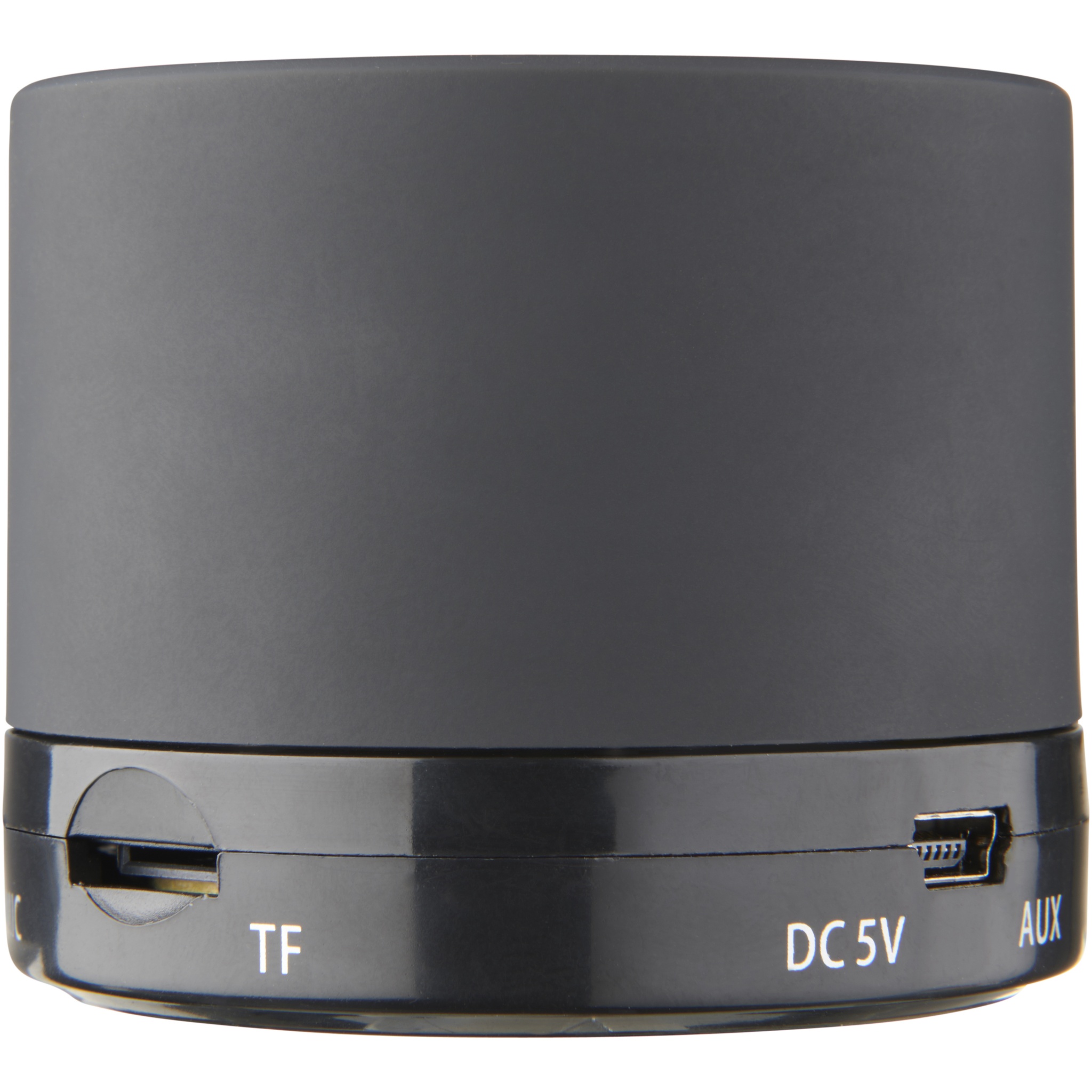 Kuminen sylinterikaiutin. Nauti musiikista ja elokuvista missä tahansa yhdistämällä Bluetooth® -yhteensopivaan laitteeseen, kuten iPhone-, iPad- tai Android OS-laitteeseen tämä kannettava Bluetooth®-kaiutin (10m säteellä). Sisäänrakennetulla mikrofonilla varustettu kaiutin mahdollistaa konferenssipuhelut älypuhelimesi kautta, tai videopuheluohjelmilla kuten Skypellä. Viimeistelty hienolla kumilla. USB-virtalähde mukana. .