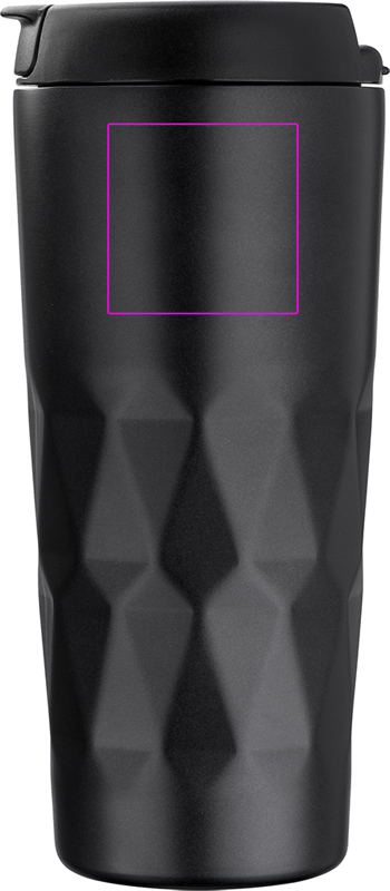 Kaksiseinäinen jalo ruostumattomasta teräksestä valmistettu muki, jonka tilavuus on 500 ml; mikä tärkeintä, tiivis. Logosi kaiverretaan.