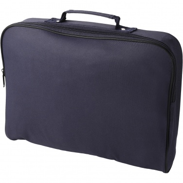 Neliönmuotoinen kokouslaukku, jossa on vetoketjullinen säilytystasku. A4-asiakirjoille.