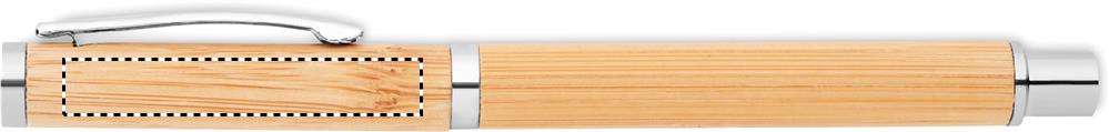 Bambuinen geelikynä sinisellä geelimusteella ja ruostumattomasta teräksestä valmistetuilla yksityiskohdilla.