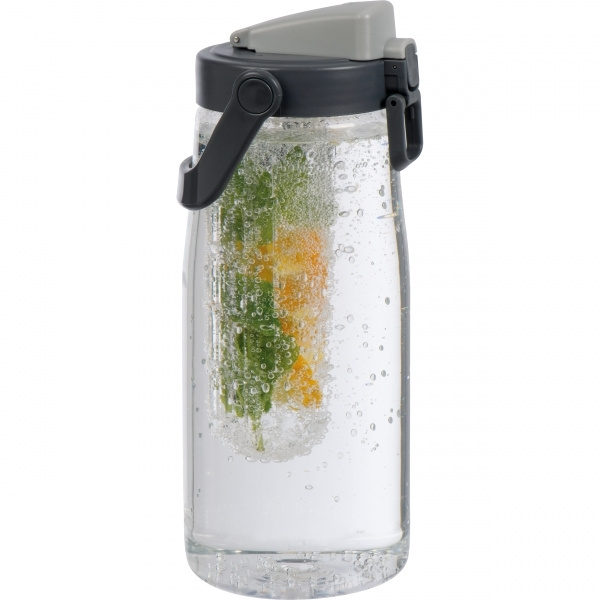 Iso muovista valmistettu juoma-annostelija, jossa lukittava nokka, kantokahva, siivilä mm. hedelmiä ja tilavuus 2500 ml. Painamme logosi pullon alaosaan.